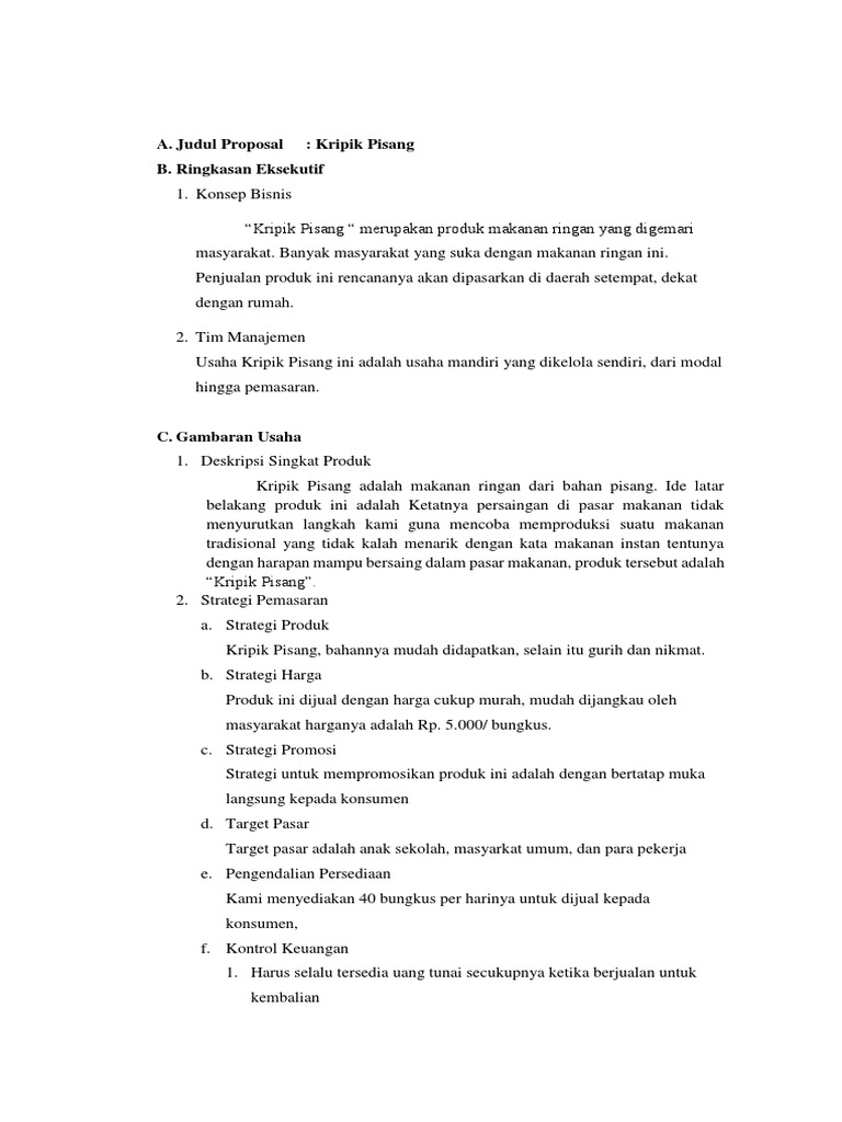 Contoh Proposal Usaha Makanan Ringan Keripik Pisang Berbagi Contoh Proposal
